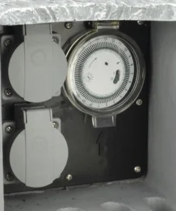 Tuinstopcontact Vierkant Steenlook 2-voudig Met Tijdschakelaar, Grijs