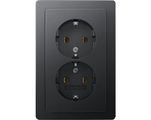 BERKER Q1 Inbouw Wandcontactdoos 2-voudig Met Randaarde Antraciet