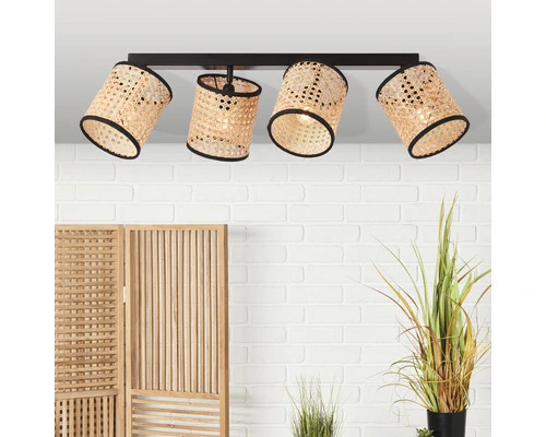 BRILLIANT Plafondspot Wiley 4-lichts Metaal-rotan Zwart-bruin