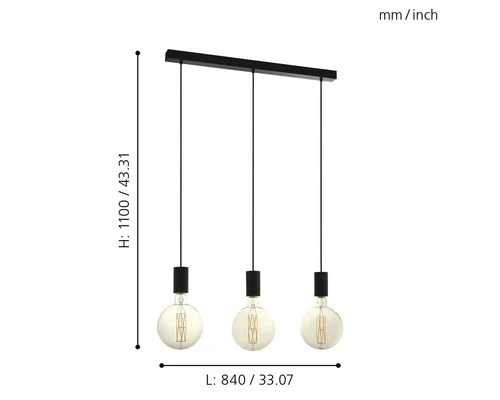 EGLO Hanglamp Pozueta 3-lichts Zwart