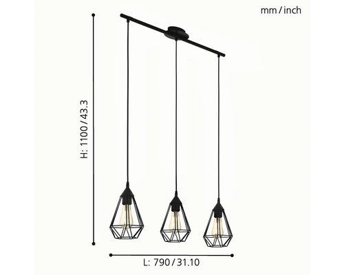 EGLO Hanglamp Tarbes 3-lichts Zwart