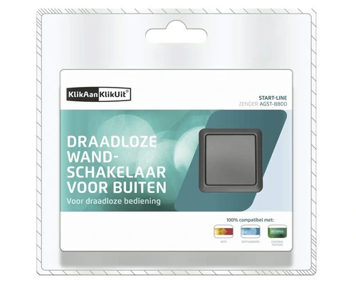 De AGST-8800 is op iedere gewenste plaats te bevestigen, zelfs buitenshuis. De AGST-8800 is IP44 spaterwaterdicht en dus ideaal voor het draadloos bedienen van je tuinverlichting. Slechts 16 mm dik en geen gedoe met draden of hoge spanning. De AGST-8800 heeft als zendfrequentie 433,92 MHz en een zendbereik van max. 30 meter (open lucht 70 meter) en kan eenvoudig gemonteerd worden op een bestaande inbouwdoos met de meegeleverde schroeven op overal op te plakken met de meegeleverde dubbelzijdige tape. Wordt geleverd inclusief 3 Volt alkaline batterij CR2032.