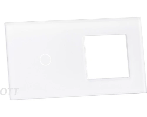 – Glaspaneel voor een enkele touch dimmer of touch schakelaar, en een opening voor One Two Touch accessoires zoals bijvoorbeeld een stopcontact, schakelaar, USB etc.