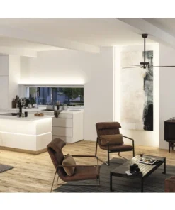 De SimpLED-strip op de gewenste lengte afsnijden, opplakken en in de contactdoos steken: zo eenvoudig zet u sfeervolle lichtaccenten aan meubelen of in profielen. Het flexibele materiaal past zich aan de meest uiteenlopende ondergronden aan. De coating biedt bescherming tegen stof en spatwater, zodat ook het gebruik aan aanrechten en wastafels probleemloos mogelijk is.