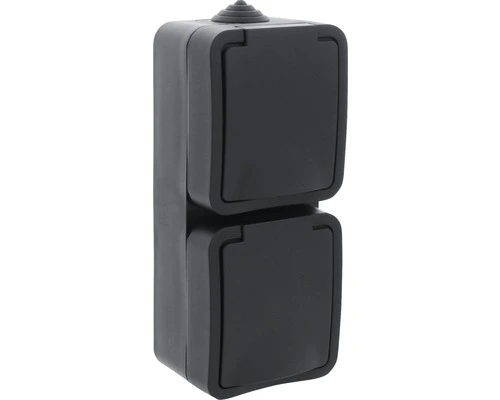 Q-LINK Opbouw Wandcontactdoos 2-voudig RA Verticaal IP54 Zwart Spatwaterdicht