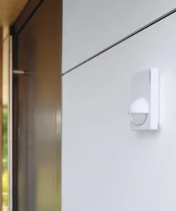 Infrarood-bewegingsmelder IS180-2, voor buiten en binnen. Hij is ideaal voor het bewaken van grote percelen en buitenruimtes, bijvoorbeeld gevels, opritten, tuinen of erven en kan door zijn slanke vorm ook op oppervlakken zonder overkapping worden gemonteerd. De parallel te schakelen design-wandsensor wordt inclusief hoekwandhouder geleverd voor een eenvoudige montage op binnen- of buitenhoeken. 180° registratiehoek, reikwijdte instelbaar tot 12 m of tot 5 m, tijd- en inschakelniveau instelbaar, m.b.v. meegeleverde afdekplaatjes kan het registratiegebied worden verkleind.