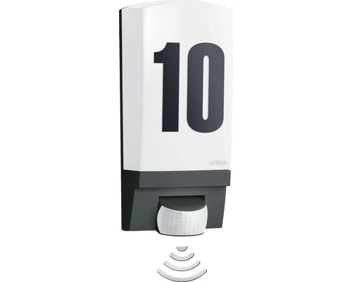 Buitenverlichting met bewegingsmelder L 270 S. Uitgevoerd met een armatuur van hoogwaardig aluminium en de nieuwste STEINEL MiniSensortechniek. Het aantrekkelijke hoogtepunt van de L 270 S is de met LED’s belichtte glasschijf. Huisnummerset inclusief.